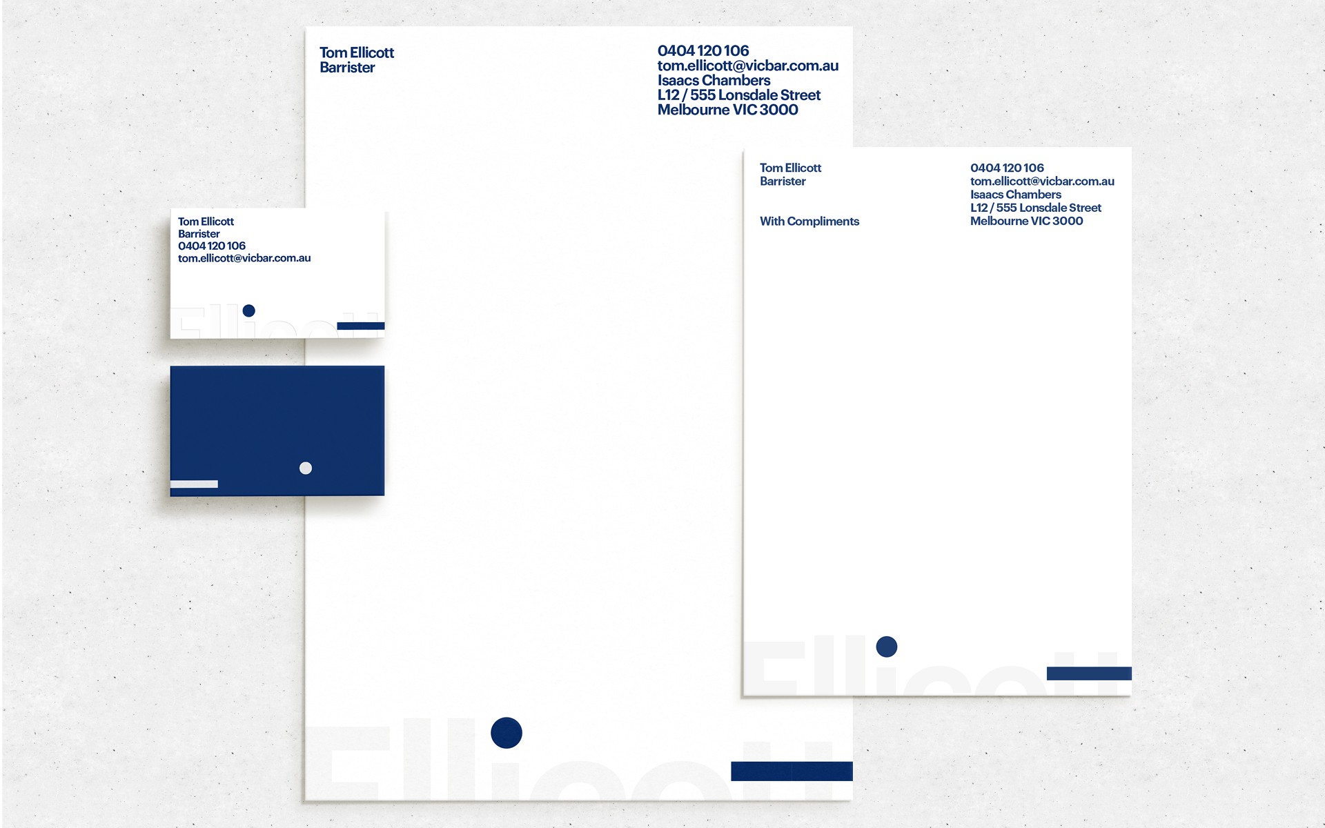 Melbourne-based barrister Tom Ellicott approached us with a clear vision: to establish a refined and contemporary brand that would set him apart in a traditional field. He wanted an identity that reflected his reputation for integrity, precision, and thoughtful practice—while still feeling understated and modern.